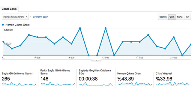 Son olarak içeriğin niteliğine değinelim. Sitenizdeki sayfaların hemen çıkma oranına bakarken moralinizi "hemen" bozmayın. Unutmayın hemen çıkma oranındaki "hemen" sayfada geçirilen süreyi temsil etmiyor. Kullanıcı sayfada uzun süre kalıyorsa, kullanıcıyı doğru bir şekilde sayfaya çekmişsiniz demektir. Burada yapmanız gereken aradığınız bulan ve içerikten tatmin olan kullanıcıyı diğer sayfalara nasıl yönlendireceğinizi bulmak.